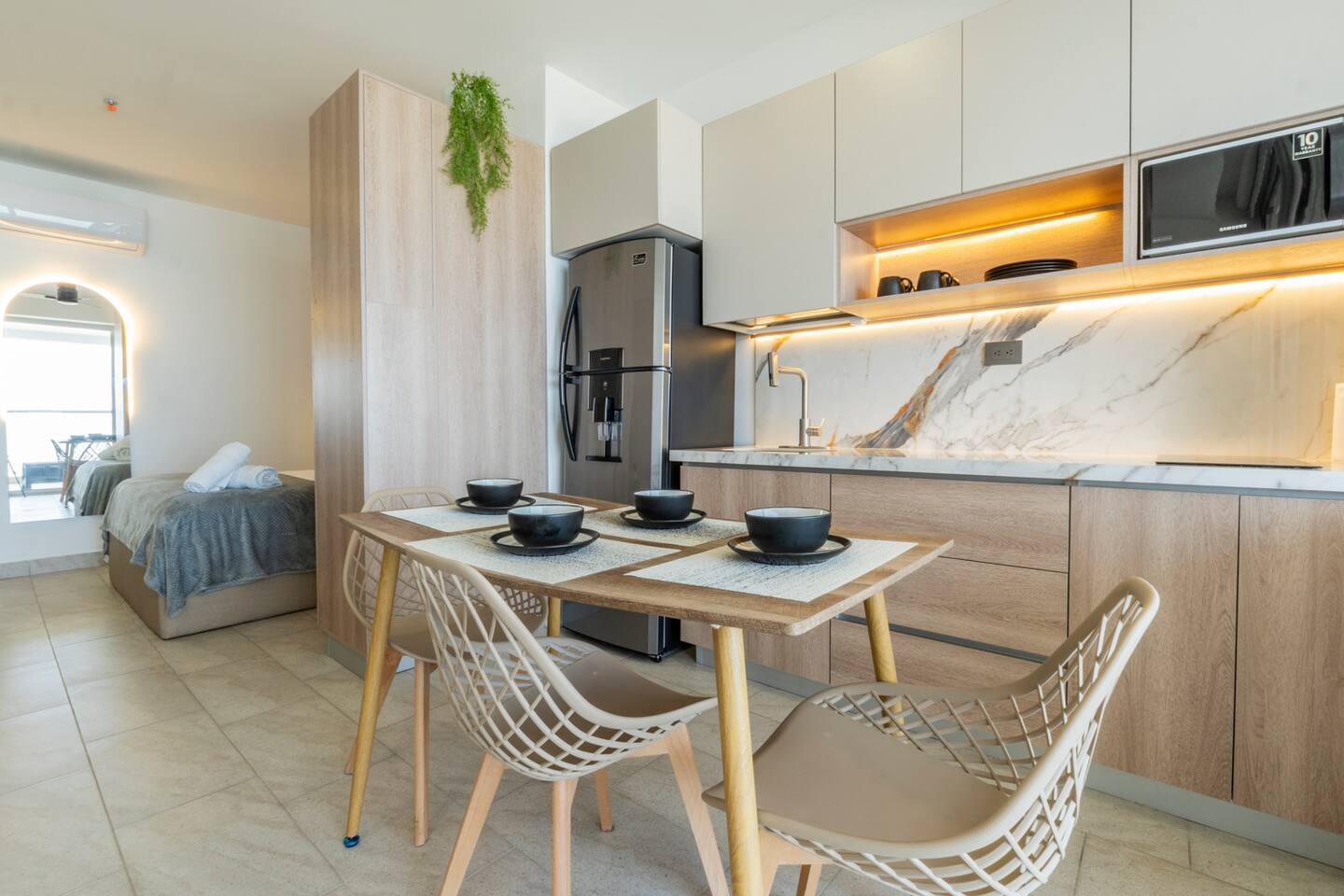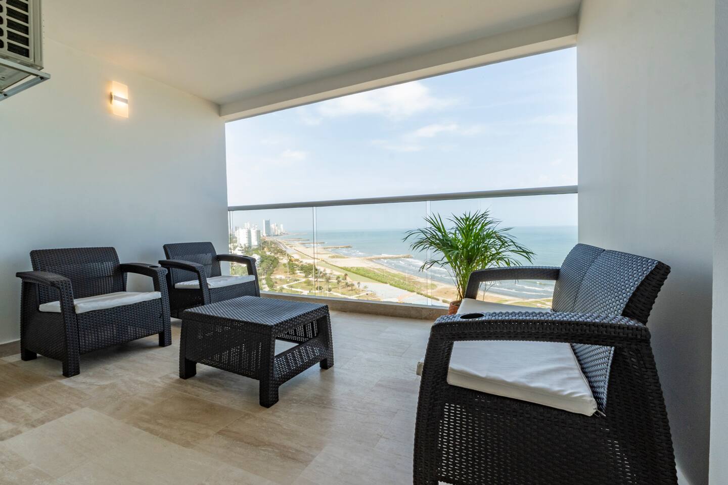 This modern loft offers stunning ocean views, just a 5-minute walk from the airport with easy access to Bocagrande, the boardwalk, and restaurants. Perfect for a quick getaway or long stay, it combines comfort, style, and convenience. 🚧 The building is still under construction, so you may see workers in the hallways. 🚨 For your safety: Only registered guests are allowed—no unregistered visitors permitted.