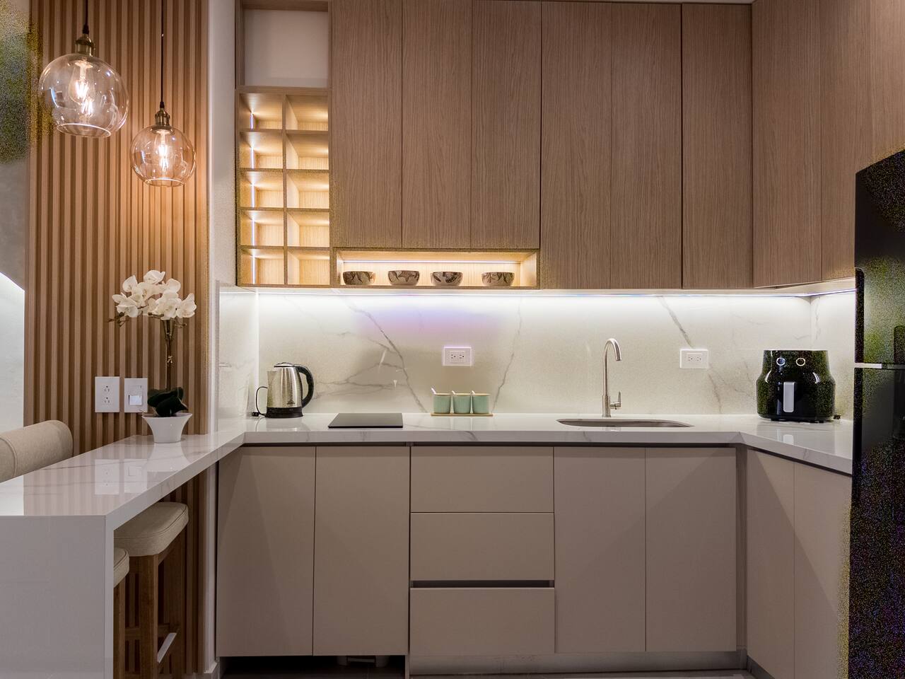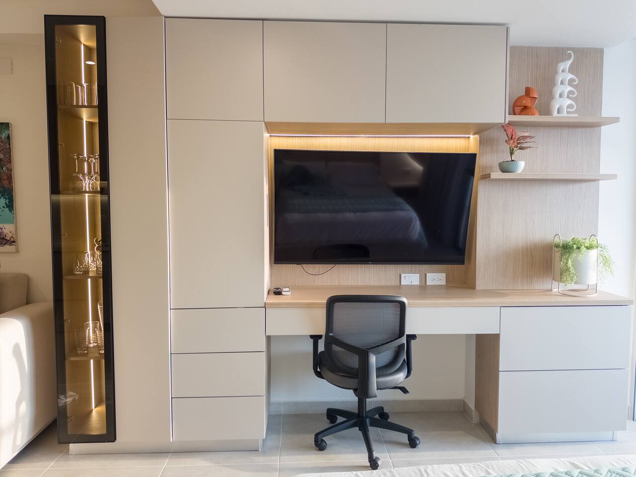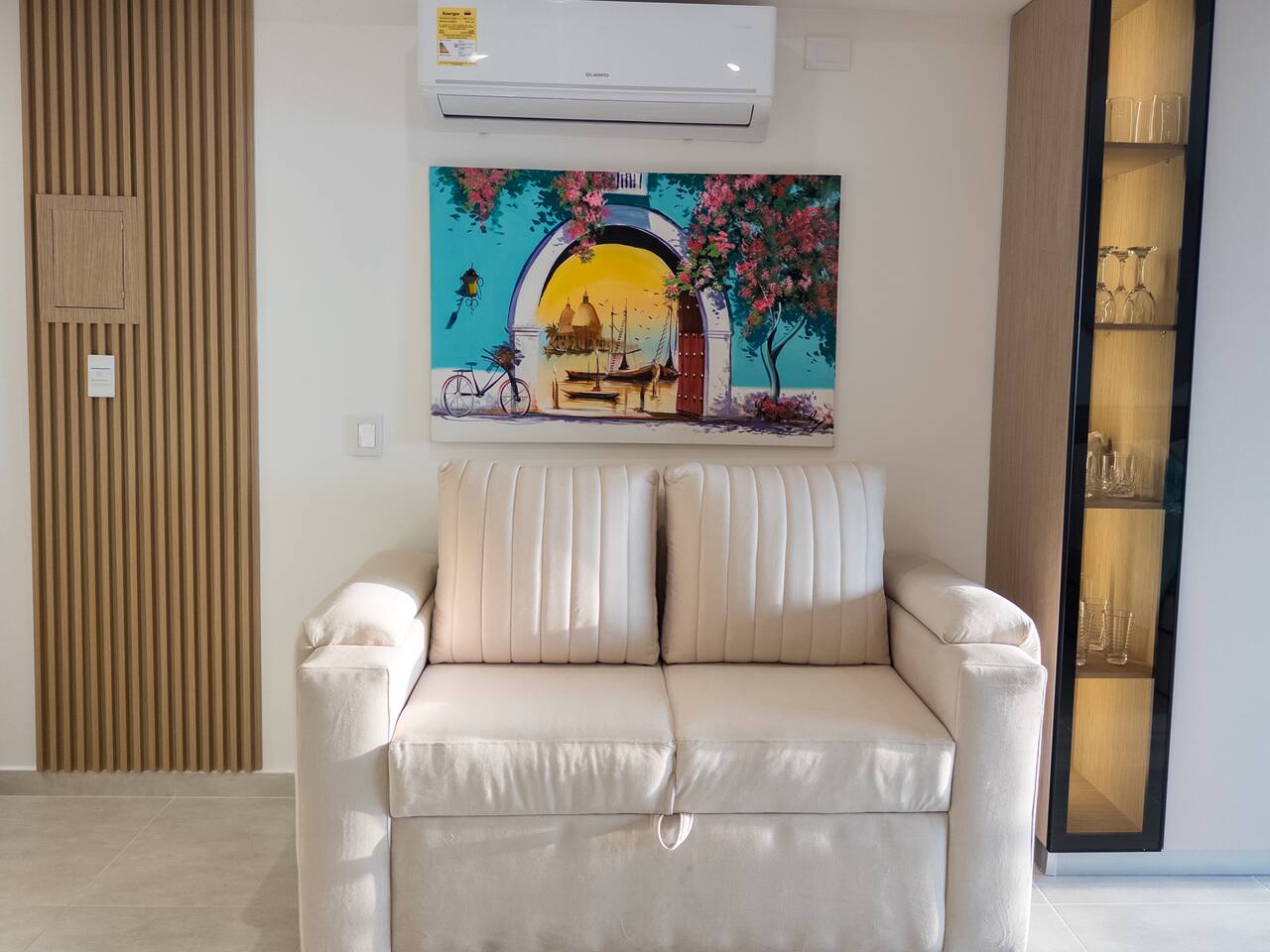 Despierta con el sonido del mar y una vista abierta al mar desde este elegante loft. Su diseño cálido y moderno crea un ambiente acogedor, perfecto para descansar o disfrutar una copa al atardecer en el balcón.
