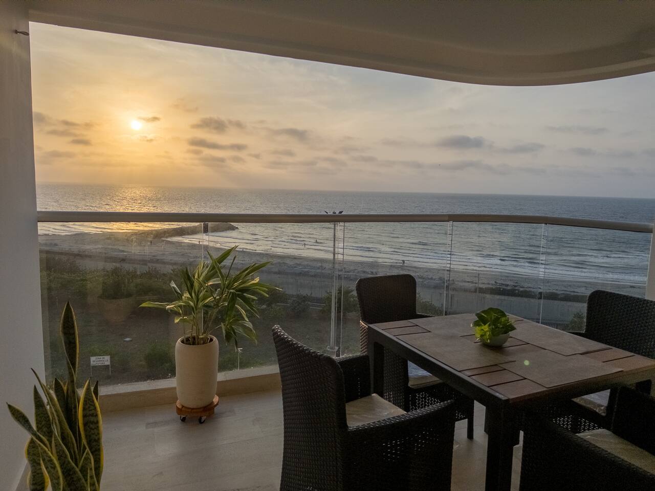 HIghlights: - Balcón privado con vista al mar - Diseño moderno y detalles cálidos - Cama doble + cama nido + sofá cama - Cocina equipada - Smart TV y WiFi rápido - Piscina y jacuzzi en el edificio