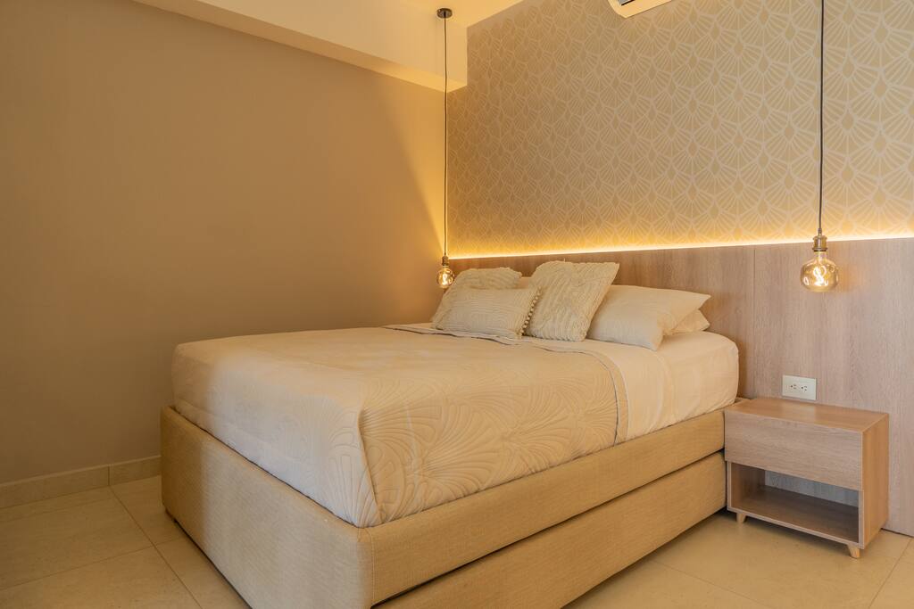 HIghlights: - Balcón privado con vista al mar 🌊 - Diseño moderno y detalles cálidos ✨ - Cama doble + cama nido + sofá 🛏️ - Cocina equipada + lavadora 🚿 - Smart TV y WiFi rápido 📶 - Piscina y jacuzzi en el edificio 🏊