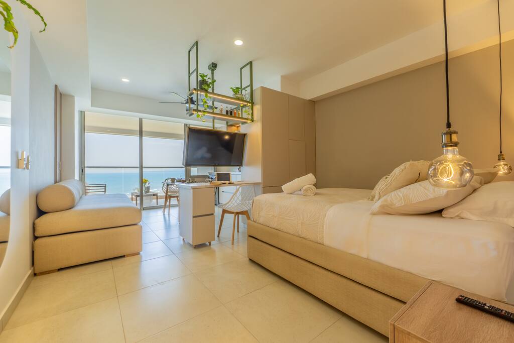 Relájate en esta escapadaDisfruta de la brisa marina y una vista directa al Caribe desde este loft moderno y acogedor. El espacio combina diseño contemporáneo, detalles cálidos y un balcón perfecto para relajarte con una copa al atardecer. Cuenta con cocina equipada, comedor, Smart TV, cama doble con nido y un sofá adicional para tu comodidad. Ideal para parejas o familias que buscan confort y cercanía al mar en Cartagena. única y tranquila.