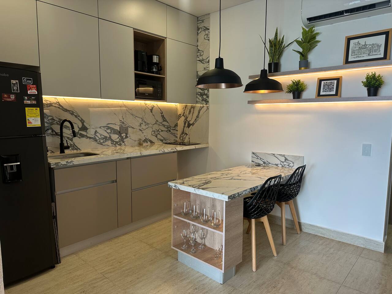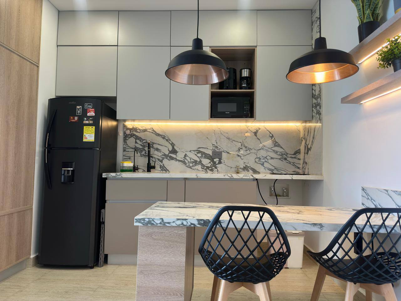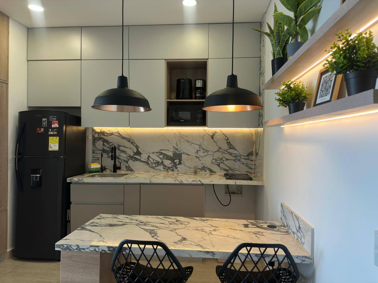 HIghlights: - Balcón privado con vista al mar - Diseño moderno y detalles cálidos - Cama doble + sofá 🛏️ - Cocina equipada - Zona de lavandería en el edificio - Smart TV y WiFi rápido 📶 - Piscina y jacuzzi en el edificio 🏊
