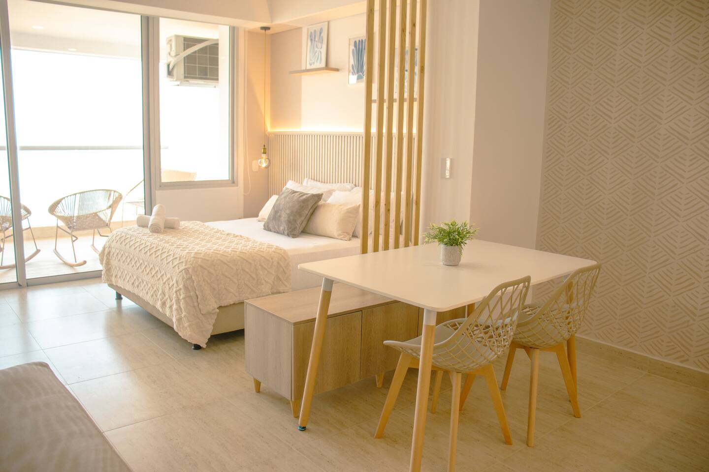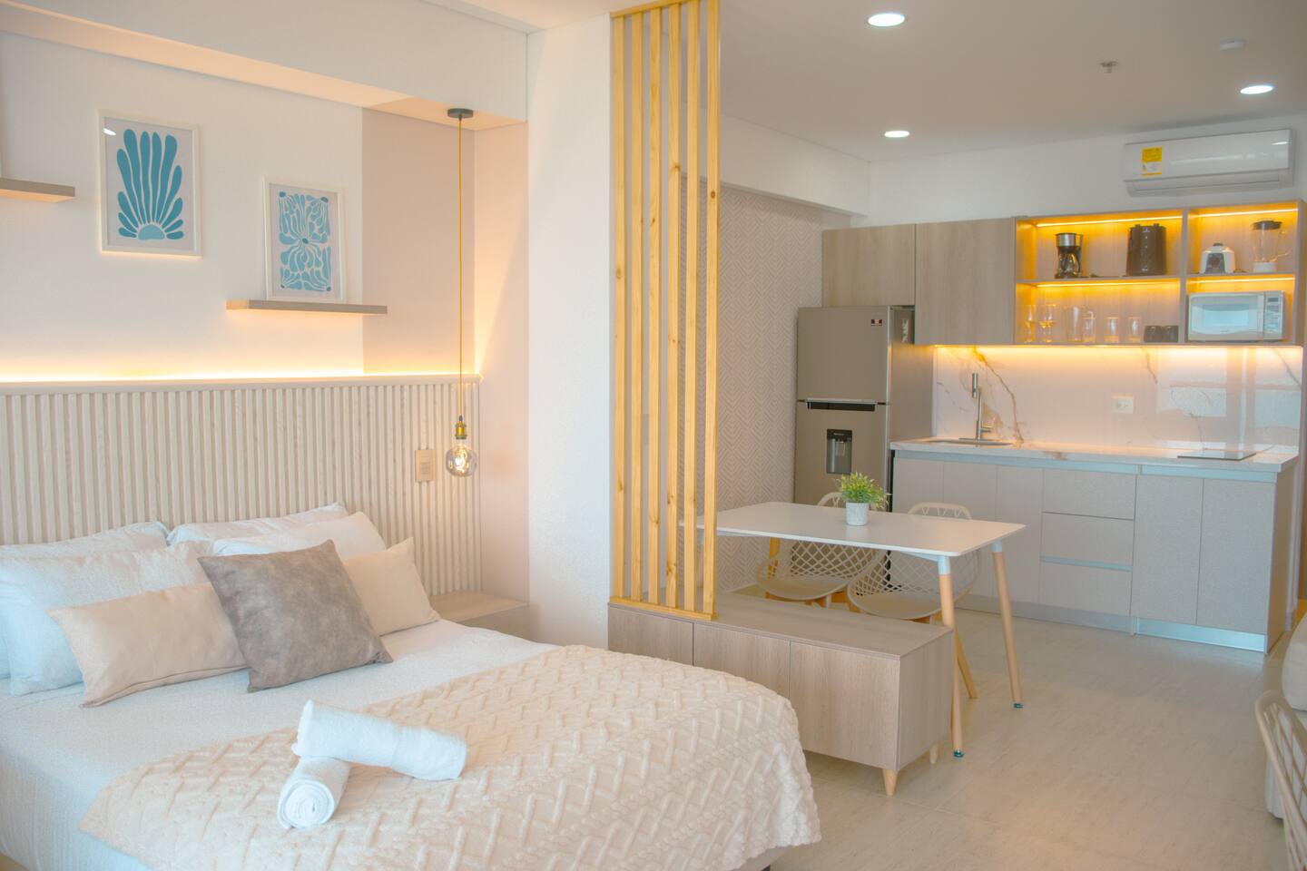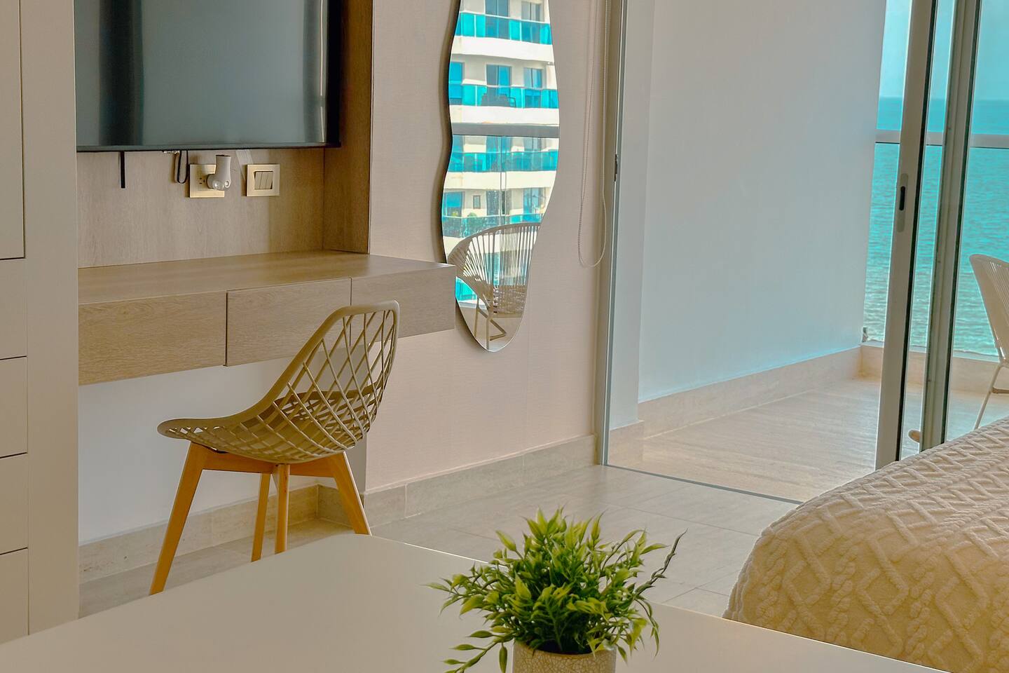Wake up to breathtaking ocean views in this modern beachfront retreat! Whether you're here to relax, explore, or work remotely, this stylish apartment offers everything you need for an unforgettable stay. Sip your morning coffee with the sea breeze on the private balcony, unwind in a beautifully designed living space, and enjoy the very best of coastal living.