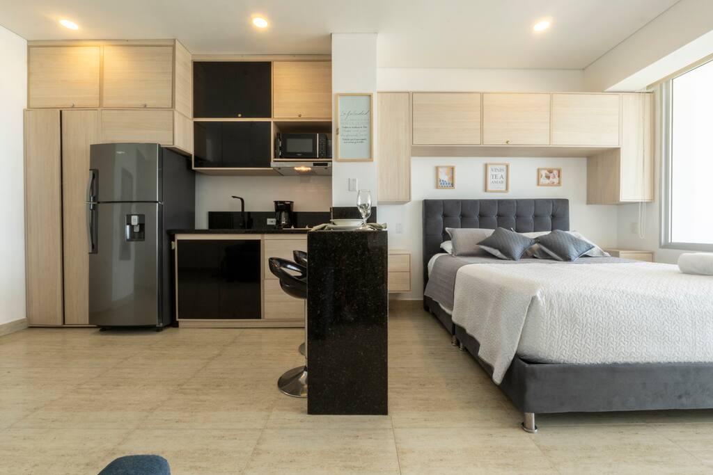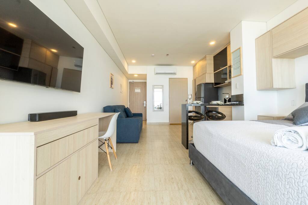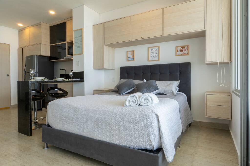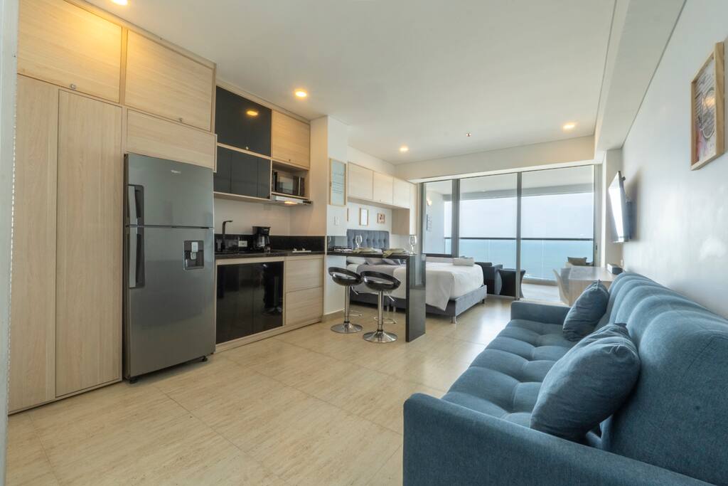Welcome to your stylish and modern loft on the 11th floor, featuring stunning panoramic views of the sea, Malecón, and Bocagrande. Bright, cozy, and designed for total comfort, it's the perfect place to relax. Just a 5-minute walk from the airport, with easy access to top attractions and beaches. 🚧 Note: The building is still under construction, so you may see some workers in the hallways. 🚨 For security: Only registered guests are allowed—no unregistered visitors.