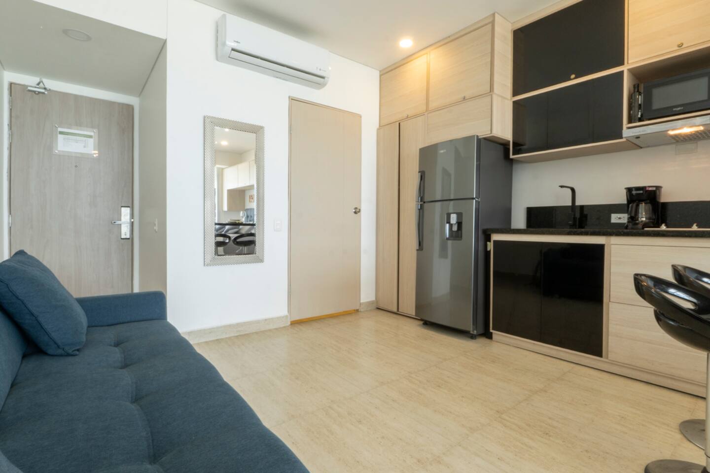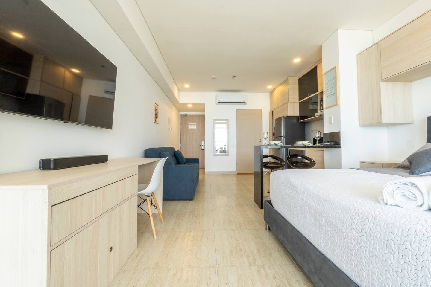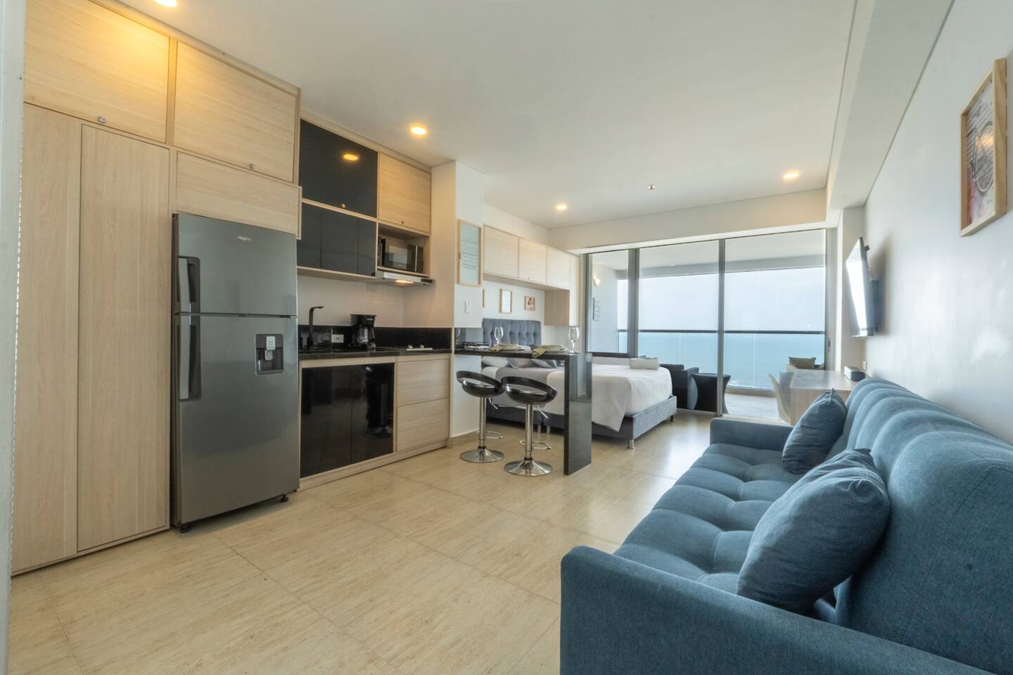Welcome to your stylish and modern loft on the 11th floor, featuring stunning panoramic views of the sea, Malecón, and Bocagrande. Bright, cozy, and designed for total comfort, it's the perfect place to relax. Just a 5-minute walk from the airport, with easy access to top attractions and beaches. 🚧 Note: The building is still under construction, so you may see some workers in the hallways. 🚨 For security: Only registered guests are allowed—no unregistered visitors.