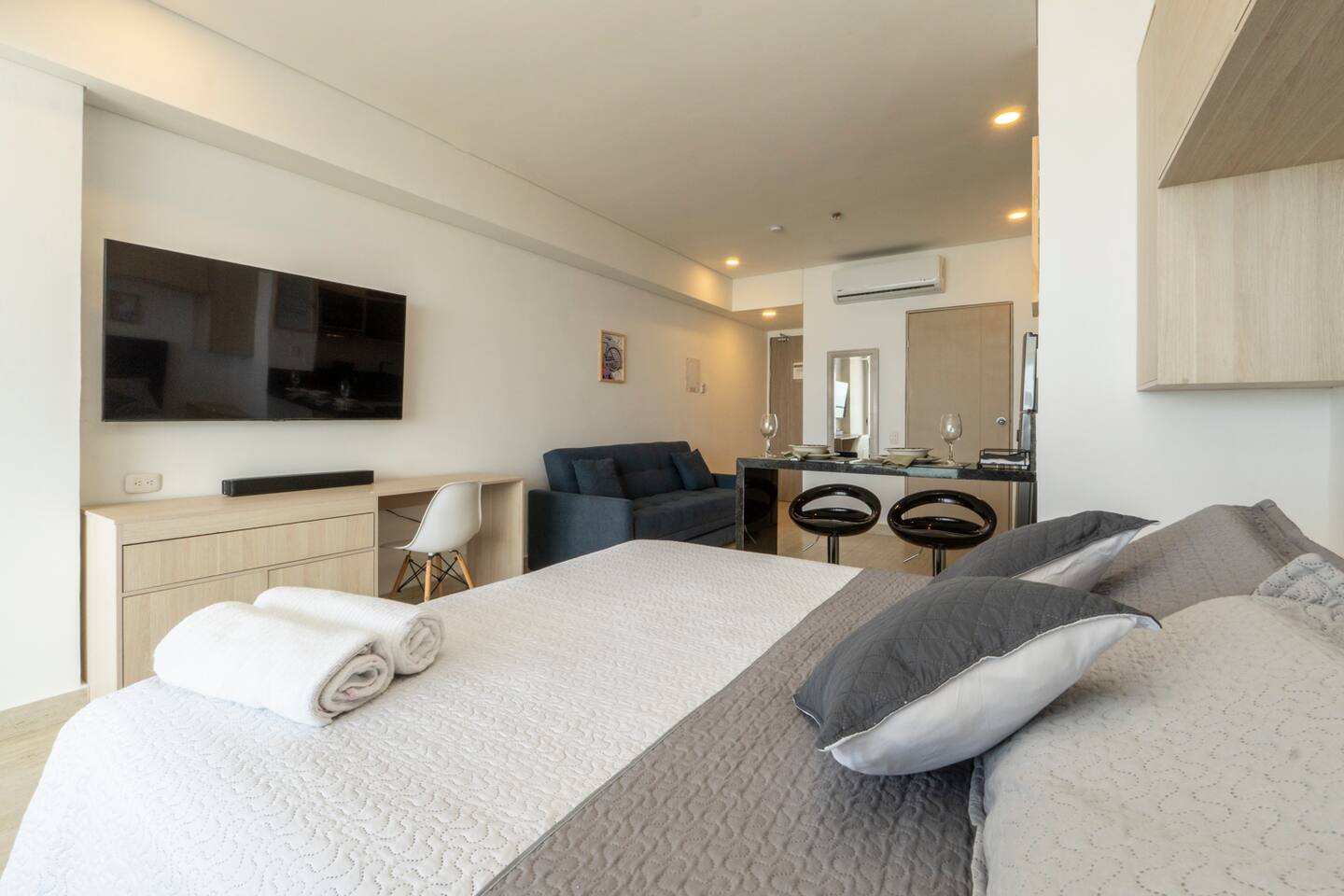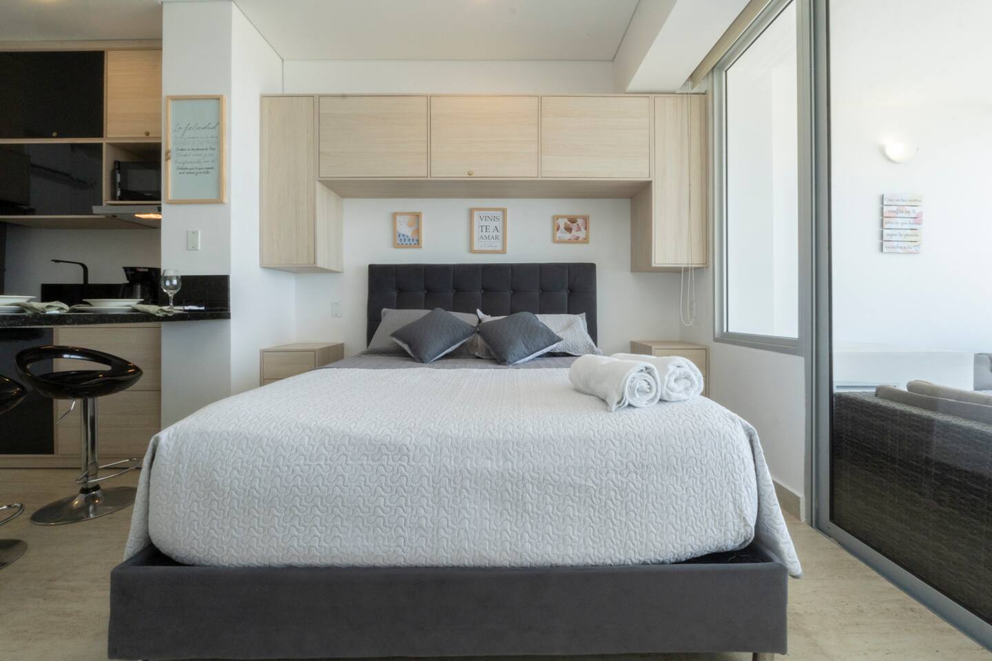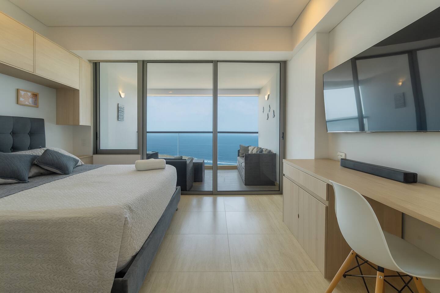 ✔ Spacious balcony – Perfect for enjoying stunning sunsets ☀️ ✔ Fully equipped kitchen – Cook like you're at home 🍳 ✔ Cozy daybed & comfy bed – Sleep soundly after a day of exploring 💤 ✔ High-speed WiFi & smart TV – Stay connected and entertained 📺 Kick back and relax in this modern, stylish loft with breathtaking ocean views. Whether you're here for business or leisure, this bright and airy space is designed for ultimate comfort. Enjoy a fully equipped kitchen, high-speed WiFi, and a cozy daybed perfect for unwinding after a day of exploring.