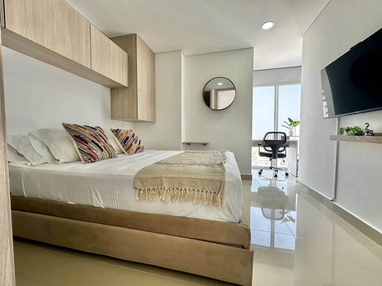 The apartment is located in the modern Magno Loft building, right in the heart of Bocagrande. Itโs surrounded by restaurants, supermarkets, shops, and just steps from the beach. Youโll have access to the pool, jacuzzi, 24/7 reception, and elevators. Weโre available to assist you throughout your stay!